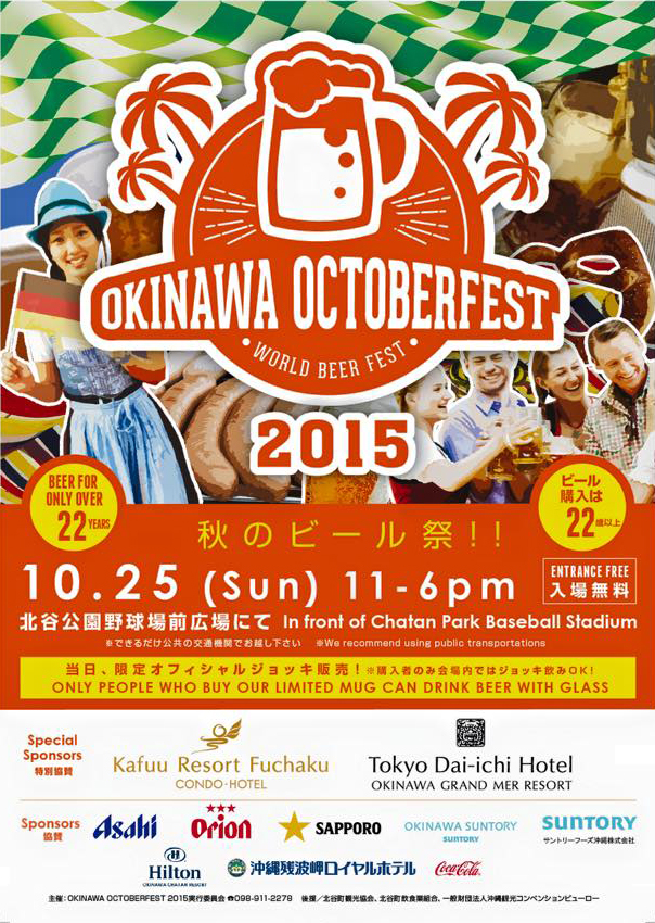 10月25日(日)、北谷公園野球場前広場で第一回「OKINAWA OCTOBERFEST 2015」が開催される。世界NO1のビールの祭典「OCTOBERFEST」は、ドイツのミュンヘンで毎年秋に開催され、200年以上の歴史を持つ世界最大のビール祭りだ。今回、この文化を取り入れた沖縄ならではの「OKINAWA OCTOBERFEST」の初の開催となる。