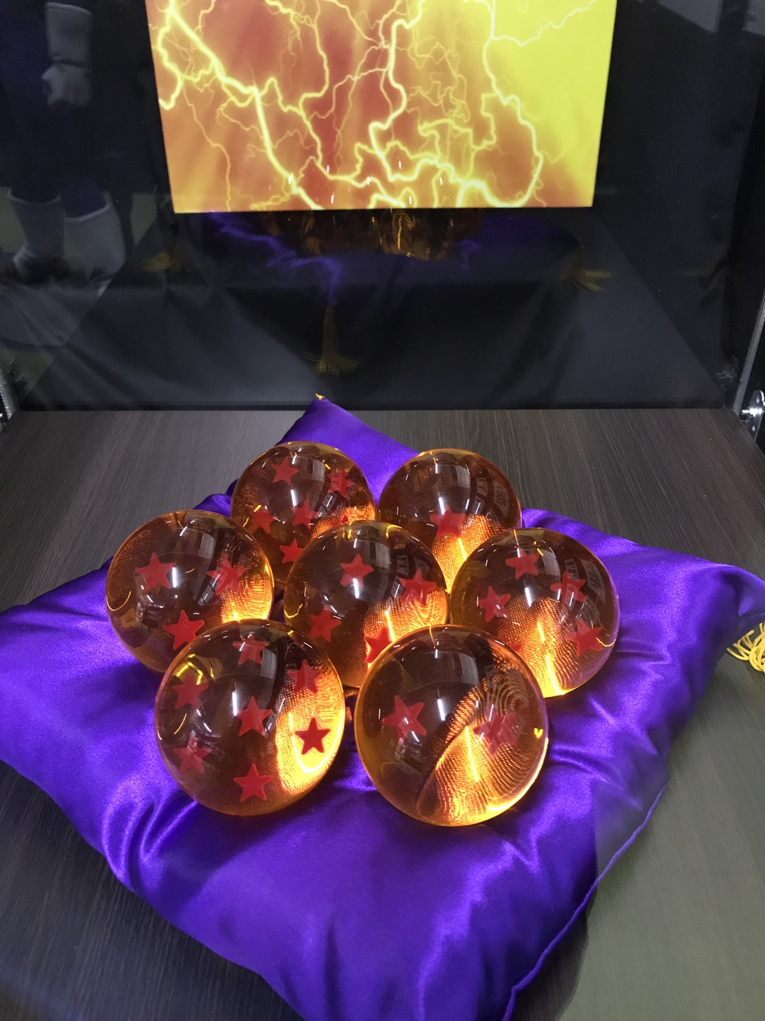 ショップにはドラゴンボールファン必見のグッズやアイテムが大集合。沖縄ではここでしか手に入らないグッズもある。展示コーナーには、アニメに出てくる7つのドラゴンボールが展示され、設定資料集やブースの目玉である等身大のフィギュア、“超サイヤ人ゴッドSSの悟空とベジータ”達に会える。