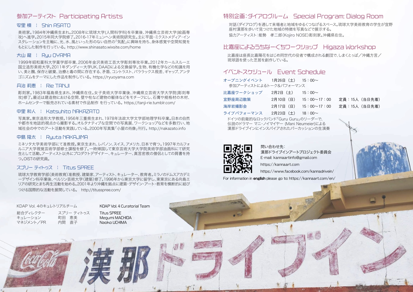漢那ドライブインアートプロジェクト第4弾となる 「漢那ドライブインアートプロジェクト VOL.4 CONCRETE VISIONS」が1月26日(土)~2月24日(日)の期間で開催。