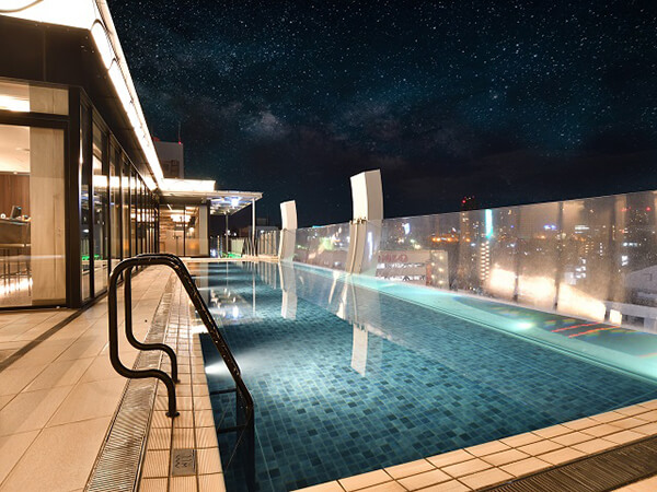 屋内プールは23時まで!スライダー、ジャグジー付き