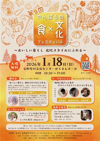 見て・聞いて・味わう体感イベント「第9回 やんばる食×文化フェスティバル」が宜野座村文化センターがらまんホールで2026年1月18日(日)に開催