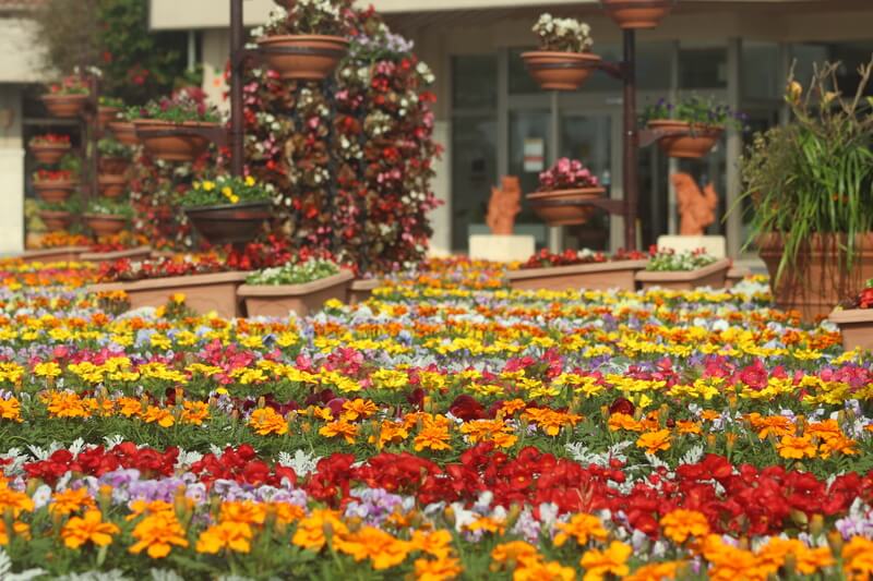 毎年、色鮮やかな草花と立体的に仕立てられた花壇が展示される「美ら海花まつり」。今年のテーマは、「咲き誇る花の宝石箱」。海洋博公園に広がる、美しい草花を公園内を散歩しながら楽しめる。
