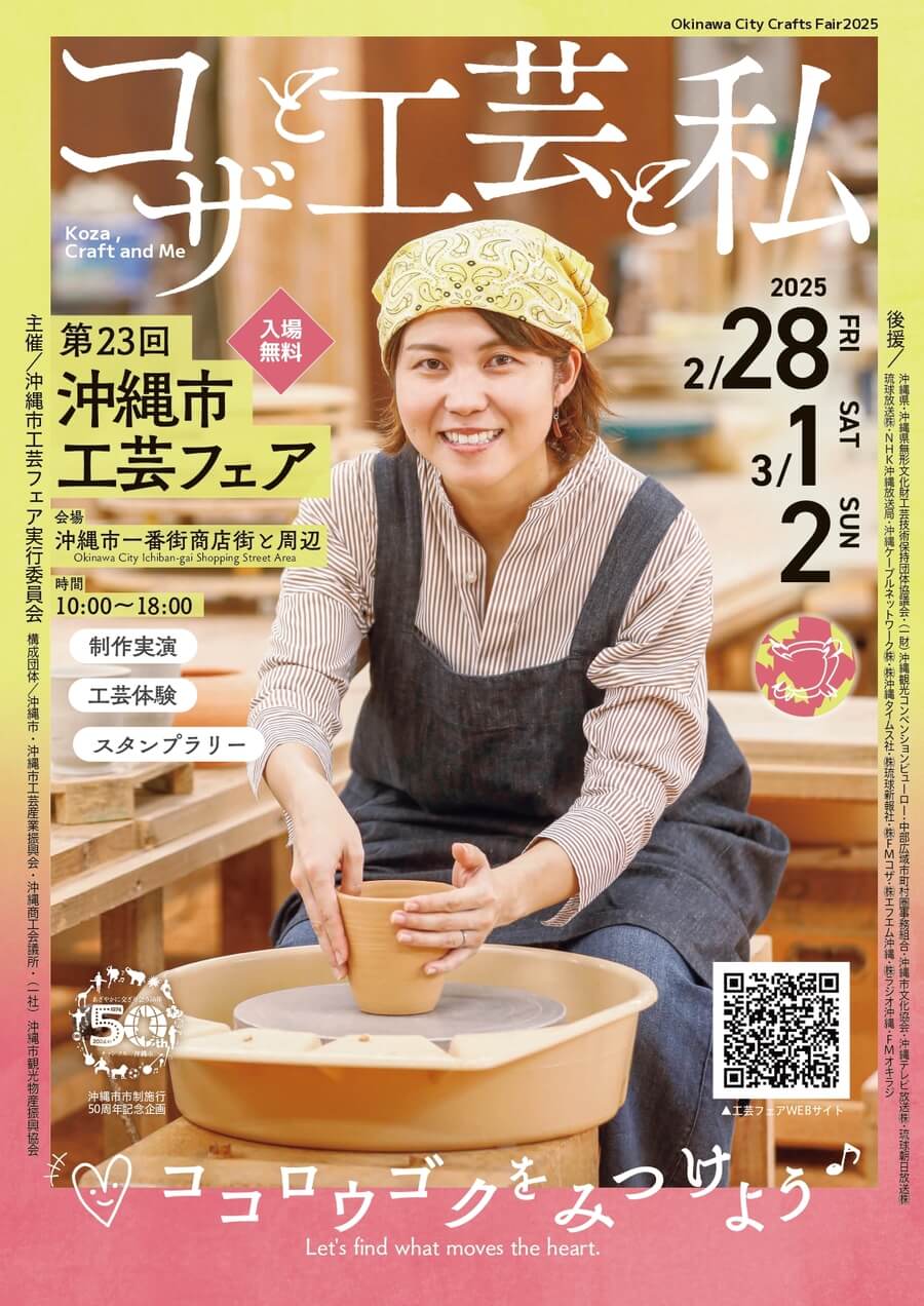 沖縄の工芸品や民具がコザの街に勢揃いする人気イベント、「第23回 沖縄市工芸フェア」が2025年2月28日(金)~3月2日(日)の3日間、開催される。