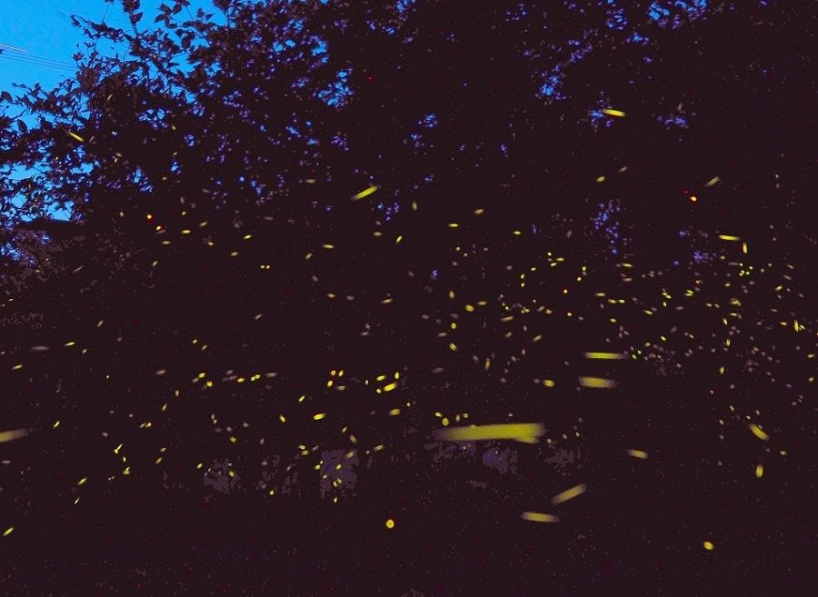 イルミネーションのように輝きを放ちながら舞うホタルの姿はとても幻想的だ。
