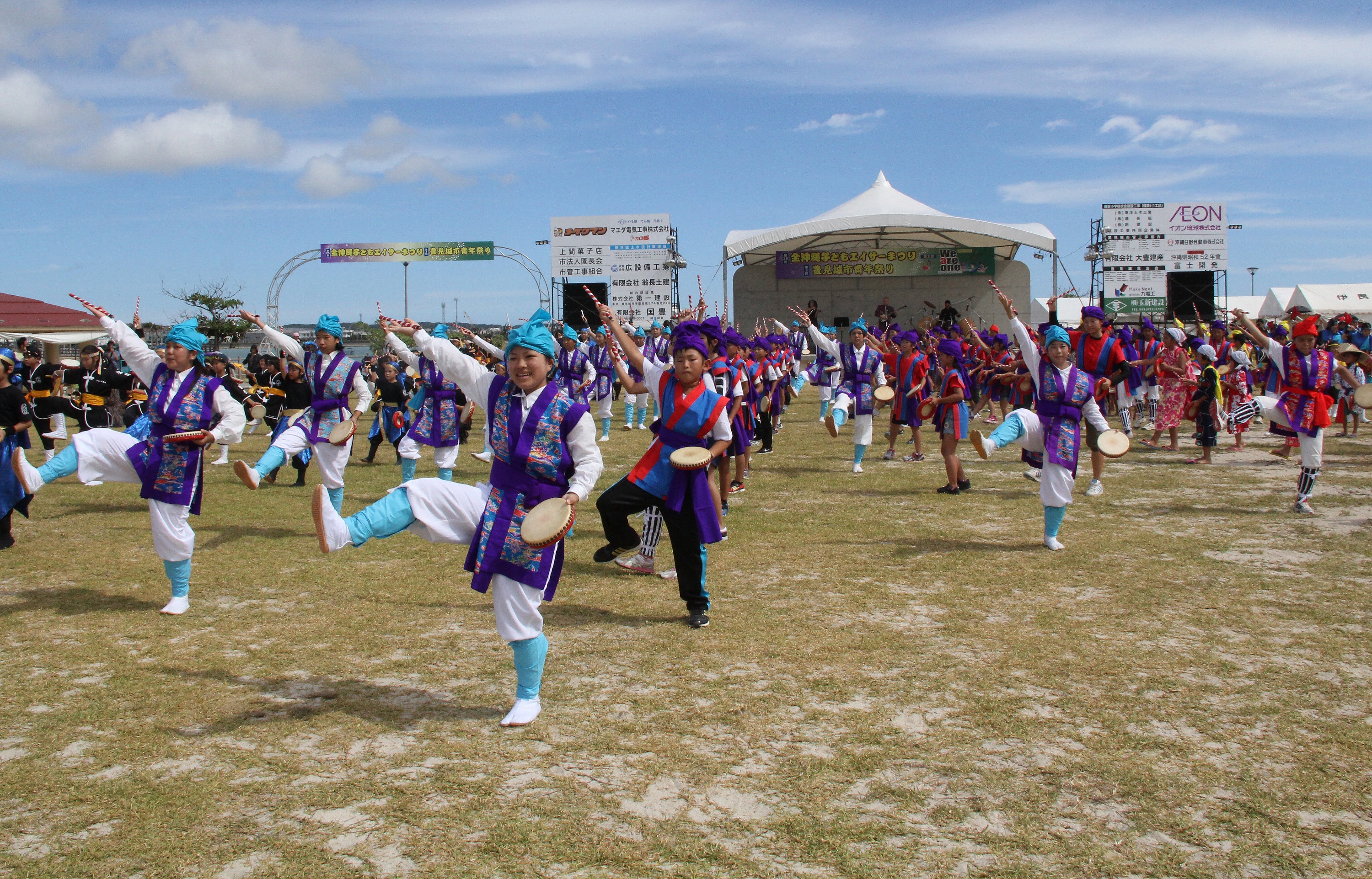 毎年7月最終日曜日に南部、豊見城(とみぐすく)市の豊崎海浜公園で行われる旧盆の伝統芸能「エイサー」のお祭り。「エイサー」のルーツは琉球王朝時代に伝わった念仏踊りと言われており、お盆の夜、先祖供養のため集落内を踊りながら練り歩くものだが、現在の沖縄では子どもの頃から団体競技の一種として盛んに行われている。
