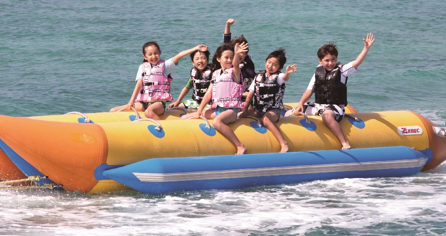 無人島ツアーでは、ムーンビーチから船で15分の無人島・ナップ島でシュノーケリングなどが楽しめる。そのほか、子どもだけでドラゴンボードや水上スキースクール、ジェットボードなどのマリンメニューが満喫できるマリンスクールも開催する。