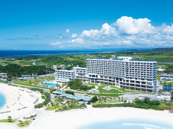 平成26年(2014)7月に誕生した「ホテル オリオン モトブ リゾート&スパ」は、年間の来館者数が200万人を超す人気の「沖縄美ら海水族館」や、白いきれいな砂浜が魅力的な「エメラルドビーチ」、沖縄の原風景を残す「備瀬のフクギ並木」などの観光スポットから徒歩数分で行ける立地にあり、多くの人が利用する人気ホテル。温泉のある設備に加え、広い客室とベッド、バルコニーからはオーシャンブルーや伊江島が望める。