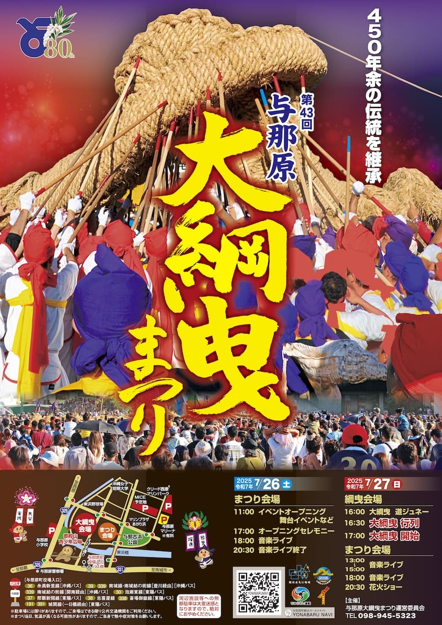 2025年7月26日(土)と7月27日(日)、与那原町で「第43回 与那原大綱曳まつり」が2日間に渡って開催される。