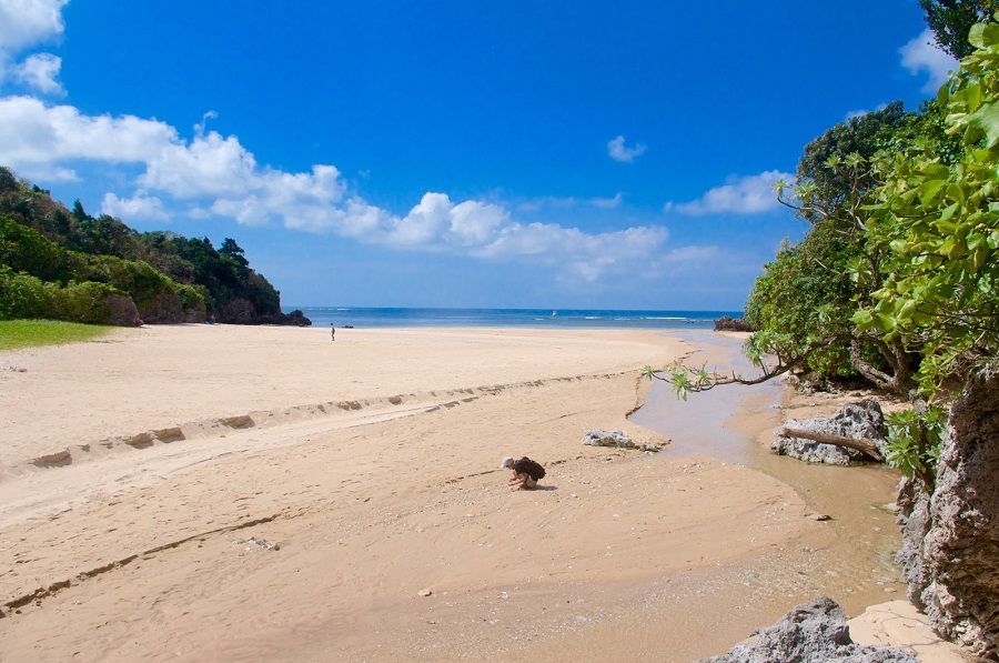 砂浜で見つかる多くの水晶は乳白色をしているものや米粒ほどの大きさだが、注意深く探すと透明なものや六角形の結晶体のものも見つけることができる。ビーチにたどり着くには、79号線から「八重山 嘉とそば」の看板を目印に海岸のほうへ降りていくと畑の中に小さな駐車スペースがあり、傾斜のきつい道を降りていくとたどり着く。潮の流れが速い場所なので遊泳には細心の注意が必要。シャワーなどの施設はないが、於茂登岳から流れ込む川があるので海から上がったあとに、真水でさっぱりとできるのも魅力のひとつだ。手つかずのビーチなので、地元の人に迷惑がかからないようマナー良く利用しよう。