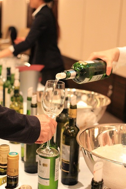 グラスを持って気になったワインのフリーテイスティングができる、スタンディング形式のスタイル。無料試飲のほかにも、プレミアムワイン「オーパス・ワン」の有料試飲もある。