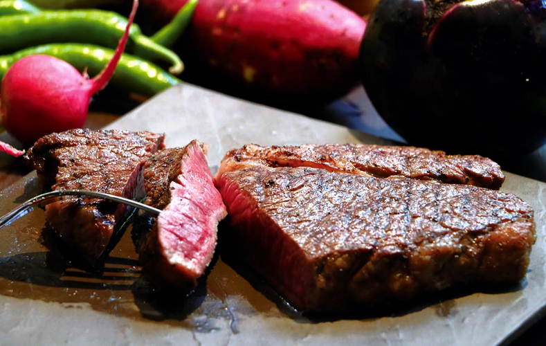 ソムリエが選んだグラスワインの種類が12種類あり、野菜は全て有機野菜を使用。特に、2ケ月以上の期間を必ず置く熟成赤肉のステーキは是非食べて欲しい、と店長の東江さんは語る。