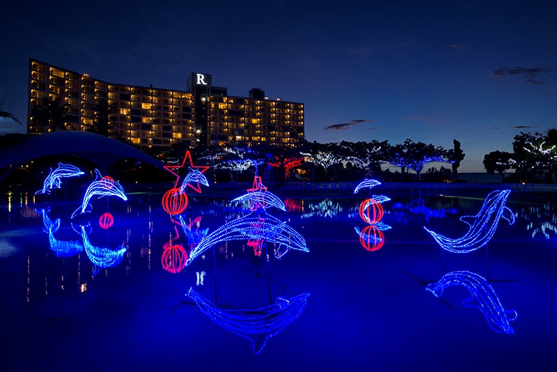 恩納村にあるルネッサンス リゾート オキナワでは、2024年11月●日(●)~2025年2月28日(金)の期間、ドルフィンイルミネーションが点灯。