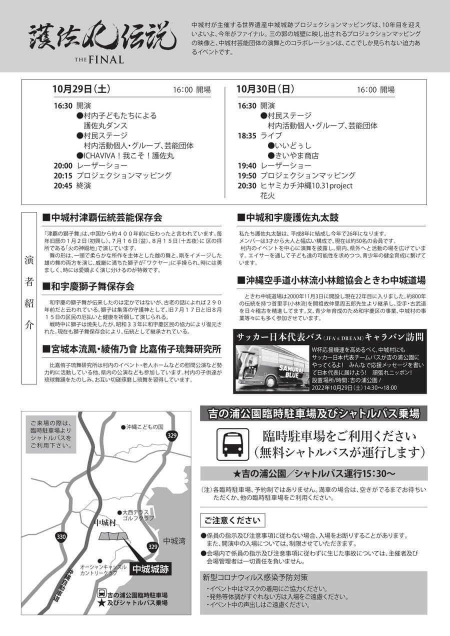 2022年10月29日(土)・30日(日)に中城城跡で、芸能と音楽を融合させたイベント「2022世界遺産中城城跡プロジェクションマッピング」が開催。