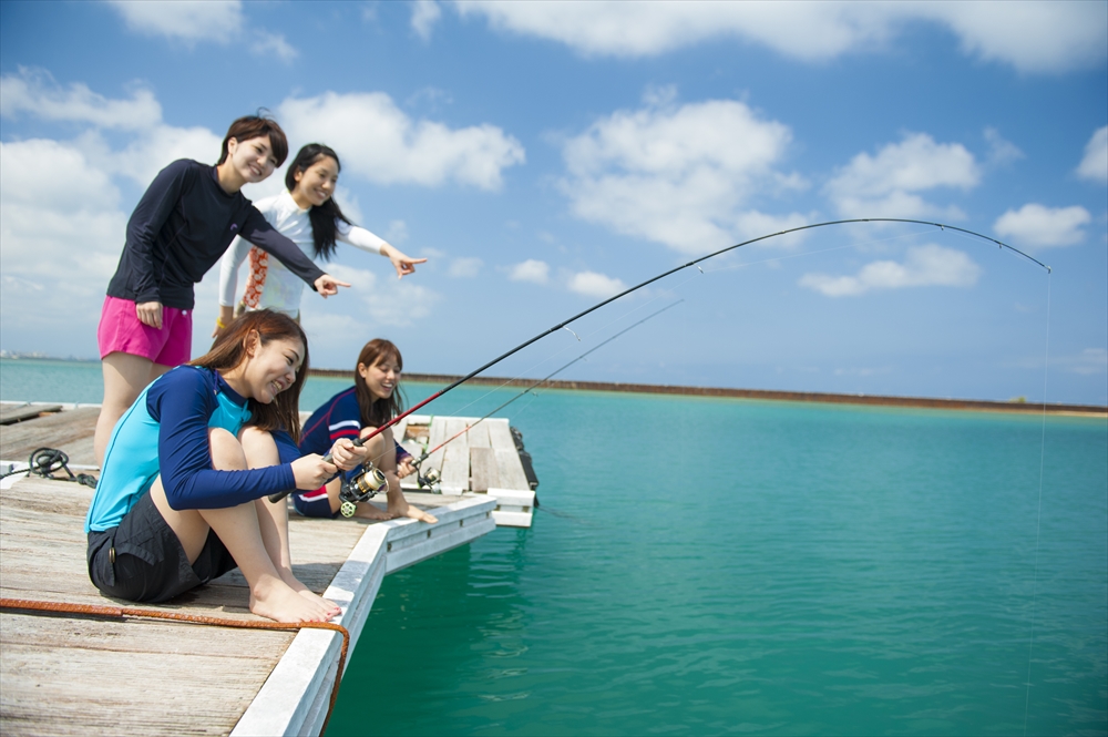 北谷町アラハビーチから船に乗って約3分の場所にあるイカダで釣り体験。主にアジやスズメダイの稚魚が釣れる。固定されたイカダの上なので、揺れはほとんど無く船酔いの心配が少ない。