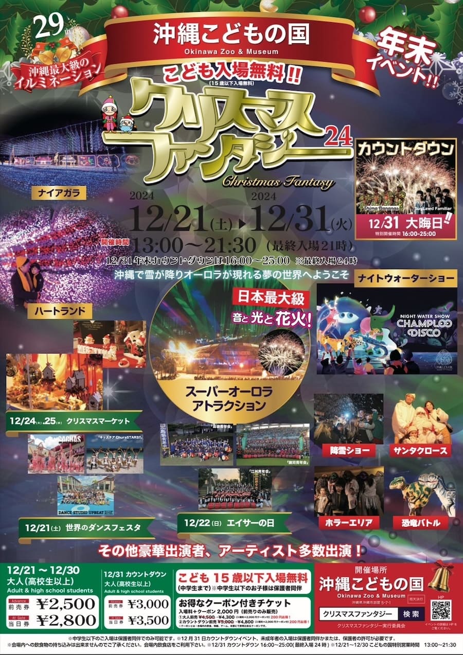 今年で開催29周年を迎える「沖縄こどもの国 クリスマスファンタジー」が、2024年12月21日(土)~12月31日(火)の期間で開催される。