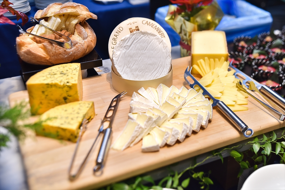 ローストビーフや種類豊富な魚介が贅沢に並び、躍動感あふれるライブキッチンのパフォーマンスも。豪華な食事と共に、ソムリエが厳選したワインやシャンパン、カクテルなど、様々な種類のアルコールも堪能できる。
