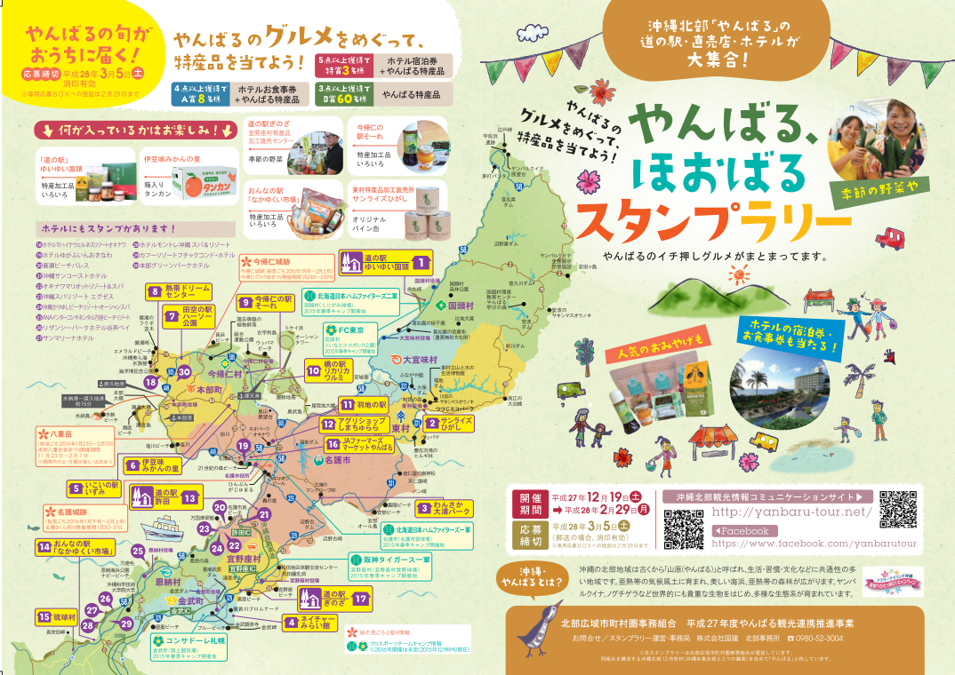 2015年12月19日(土)~2016年2月29日(月)まで、沖縄県北部のやんばるエリアで「やんばる、ほおばるスタンプラリー」が開催されている。
