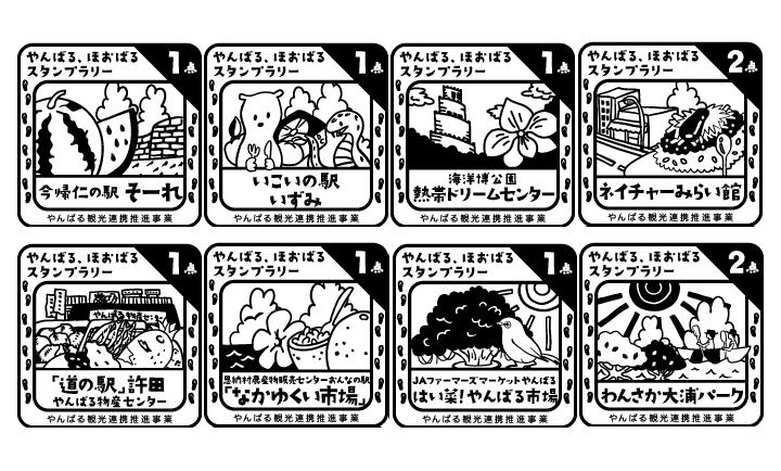 北部にある道の駅や直売店、ホテルの30カ所に、それぞれ点数がついたスタンプが設置されていて、3点以上集めると抽選で71人にやんばるの“おいしいもの”やホテルの宿泊券、食事券が当たる。