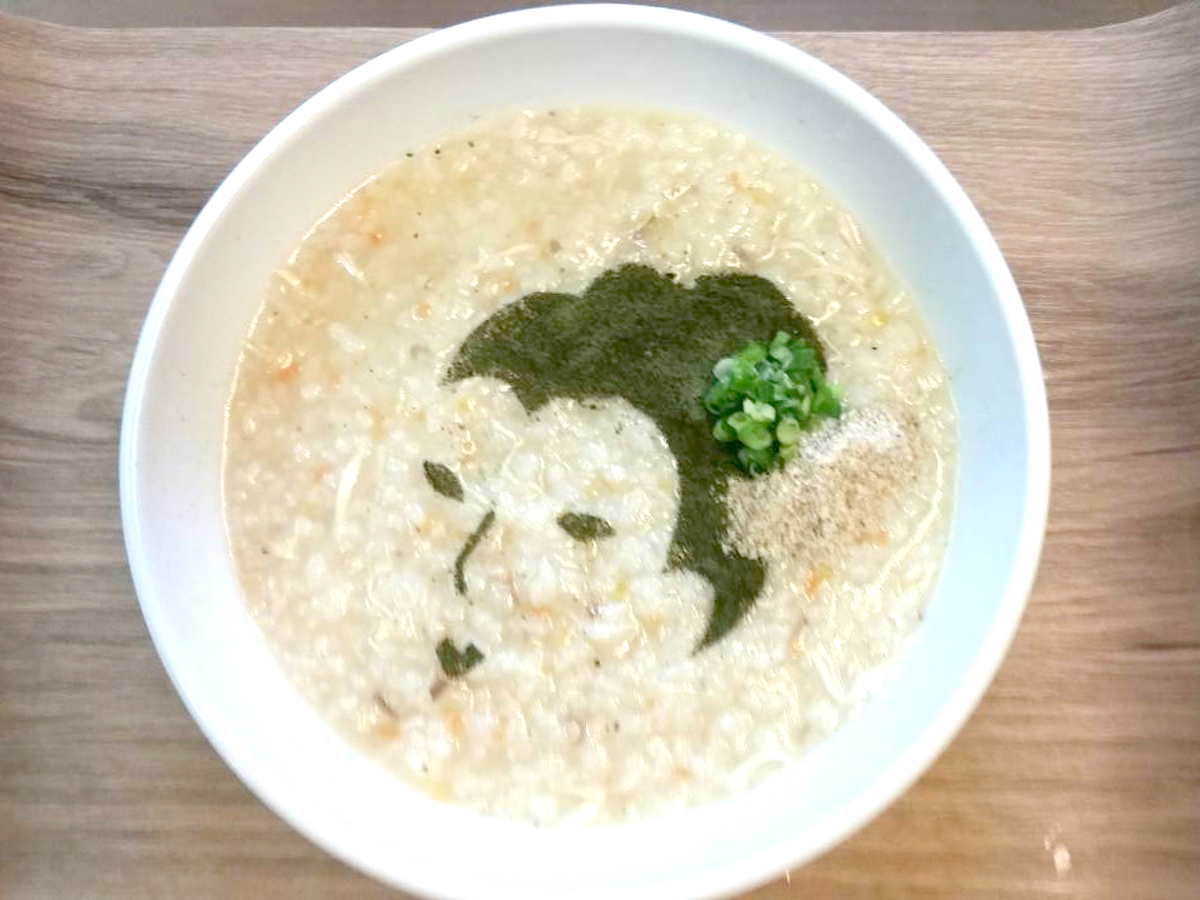 お粥の表面にはのりで「琉球女性」が描かれている。名前は沖縄方言で愛してますを表す「かなさん」。食べる前に写真を撮りたくなる可愛らしいお粥だ。