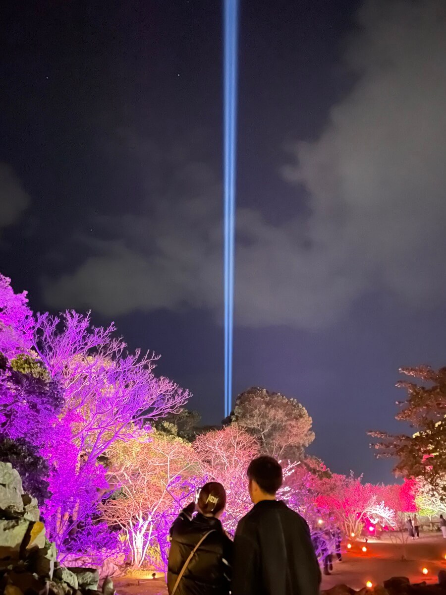 ももいろクローバーZ 高城れにさんカラー(紫色)に今帰仁城跡が染まります。