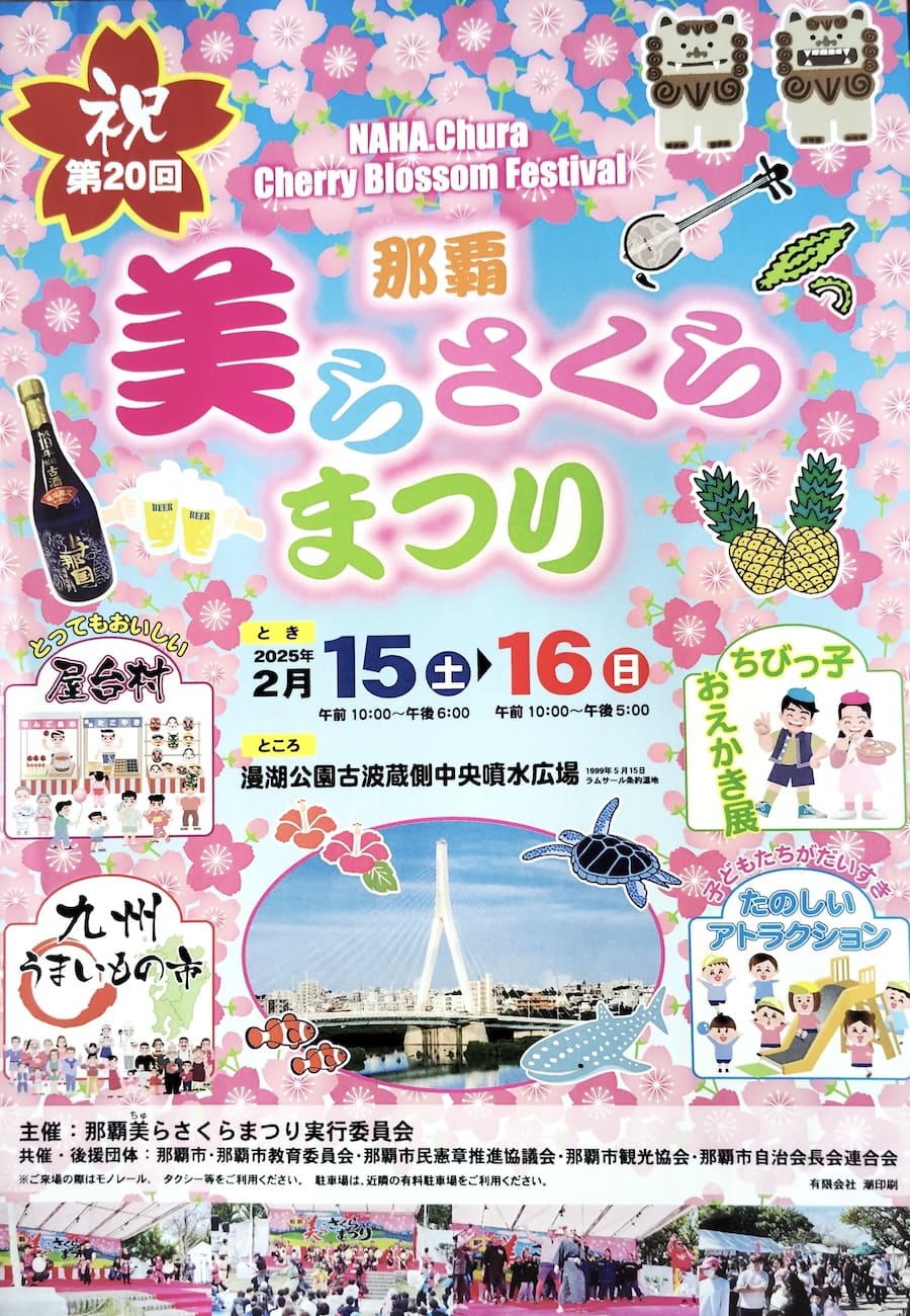 那覇市と豊見城市にまたがる広大な干潟・漫湖公園にて、2025年2月15日(土)・2月16日(日)に「第20回 那覇美らさくらまつり」が開催される。