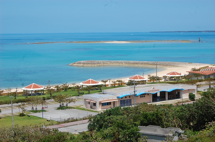 あざまサンサンビーチは、南城市の知念半島にある安座真港に隣接する太平洋に面した人工ビーチだ。
