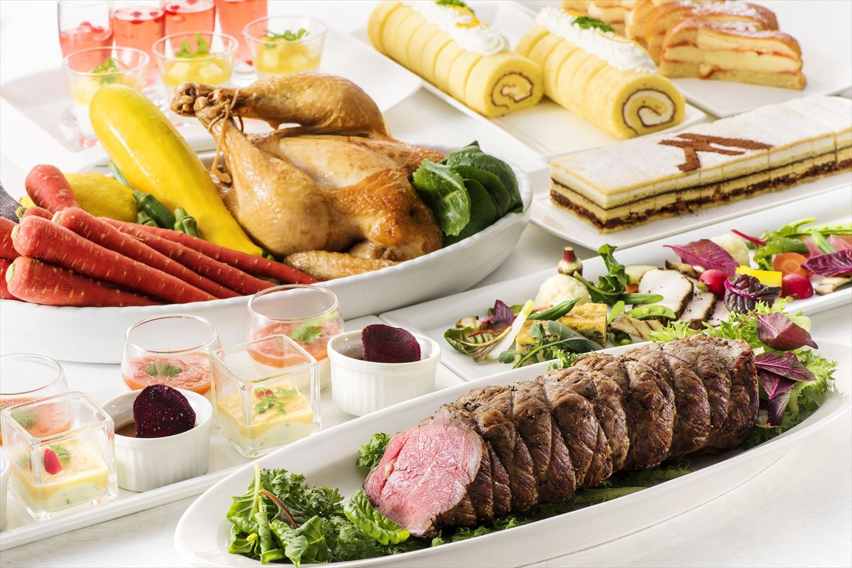 季節の県産食材をはじめ、クッキングステーションでは、シェフが目の前で作り上げる出来立てパスタや、USサーロインのローストビーフや、極うすイタリア産プロシュートなど、厳選された食材を使用した料理が味わえるのも魅力のひとつだ。