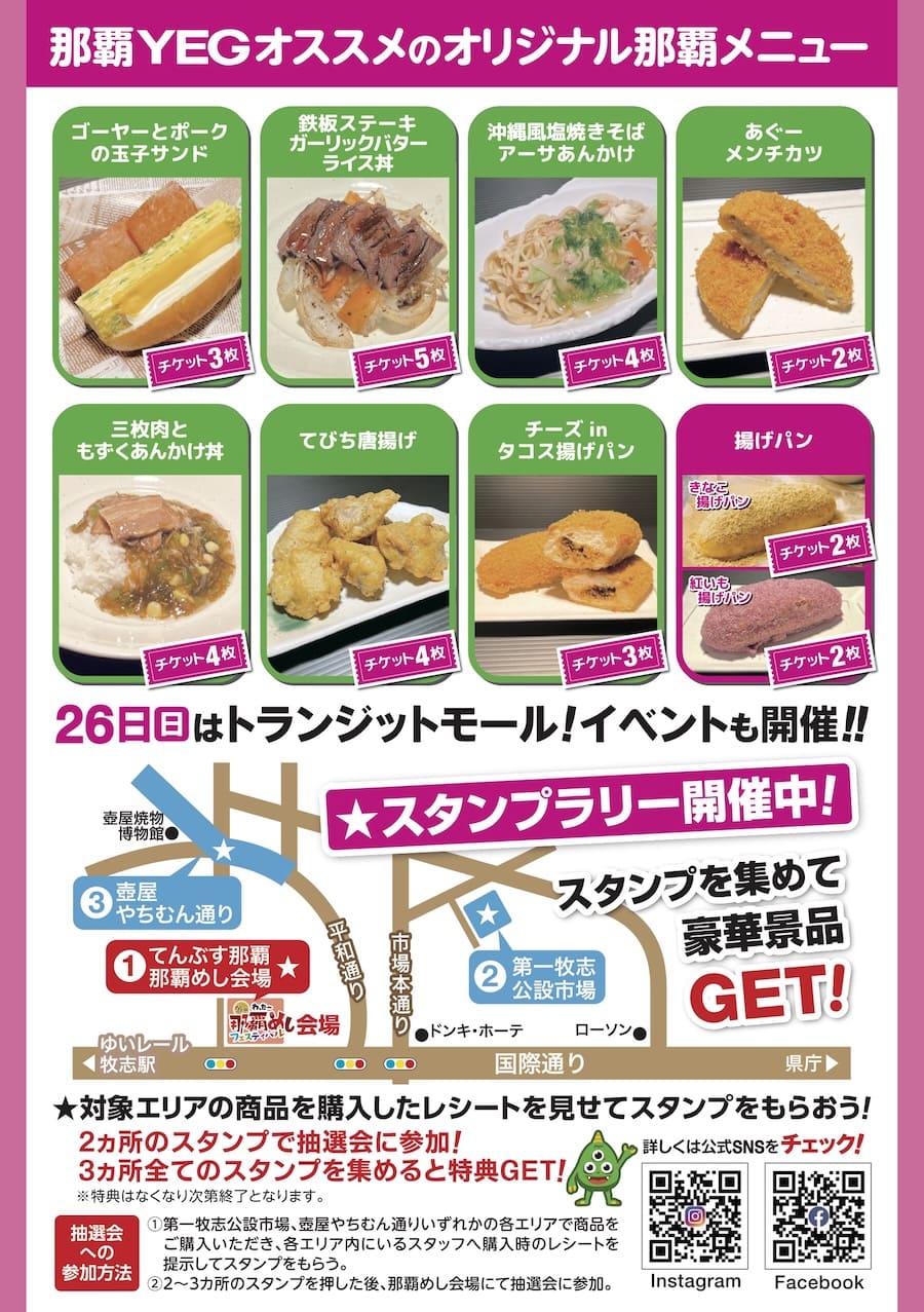 昨年まで「那覇めしグランプリ決定戦」として開催していたグルメイベント。今年は趣向を変え、新しくなって開催。那覇のソウルフードを目指すオリジナルメニューが勢揃いする。