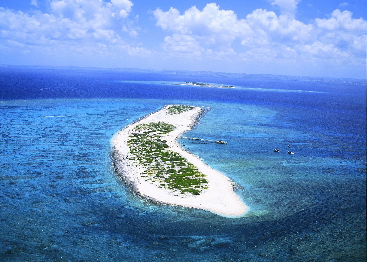 那覇市の沖合約15キロにナガンヌ島、神山島、クエフ島の3つからなる、ダイビング・スポットとして有名な環礁群「チービシ(慶伊干瀬)」の一番大きな島だ。
