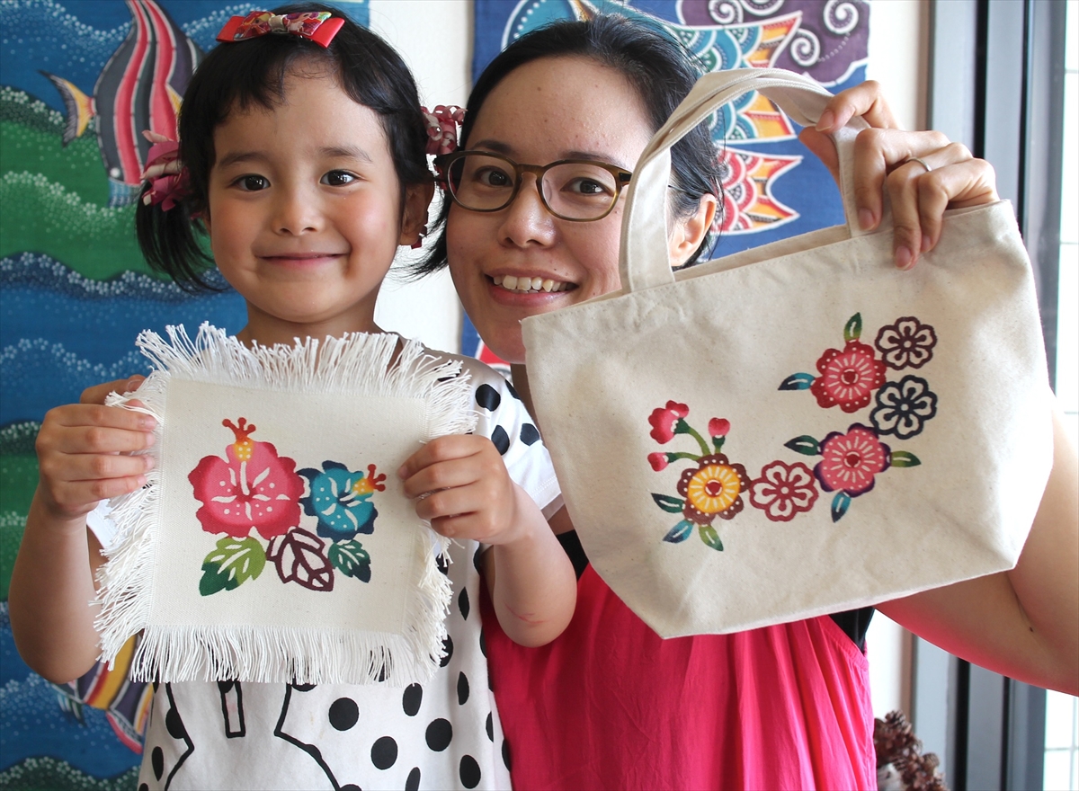 販売はもちろん、子どもから大人まで気軽に楽しめる紅型染め体験もあり。自分で染めた作品をインテリアとして飾ってみてはいかがだろう。