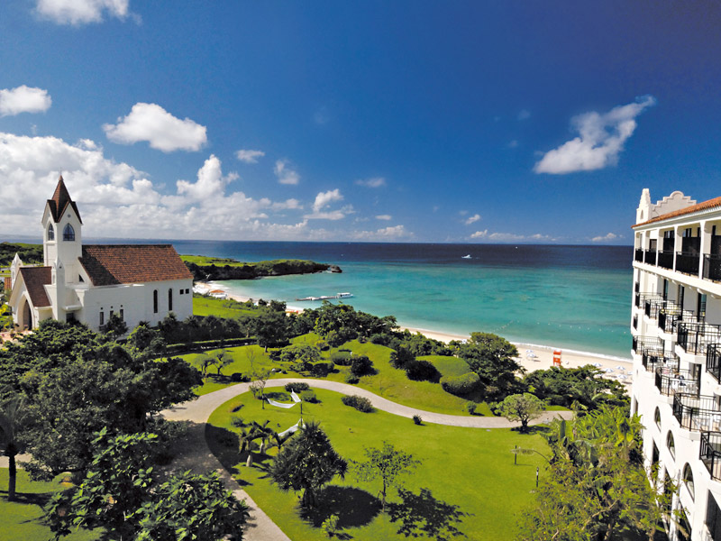周囲を海に囲まれ対岸に景勝地「万座毛」を望む沖縄有数のリゾートホテル。国内最大級の海上アスレテックが大人気。夏は打ち上げ花火も開催される。また、沖縄県内では唯一のベンチシート型「パラセール」で空中散歩が楽しめるほか、海中のサンゴ礁や熱帯魚などを見ることができる半潜水艦「サブマリンJr II」など、アクティビティプランが豊富。