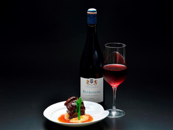 12月のシェフ自慢の一品は「沖縄県産和牛のとろとろ煮込み」。シニアソムリエ厳選ワインには、本場フランス・ブルゴーニュ産の「ブルゴーニュ・ルージュ2013」が味わえる。
