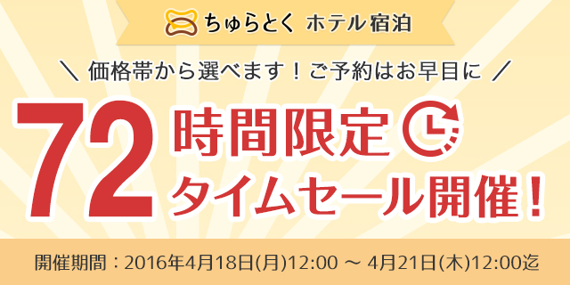 4月18日(月)12時~4月21日(木)12時まで、ちゅらとく限定ホテル宿泊プランのタイムセールを開催。