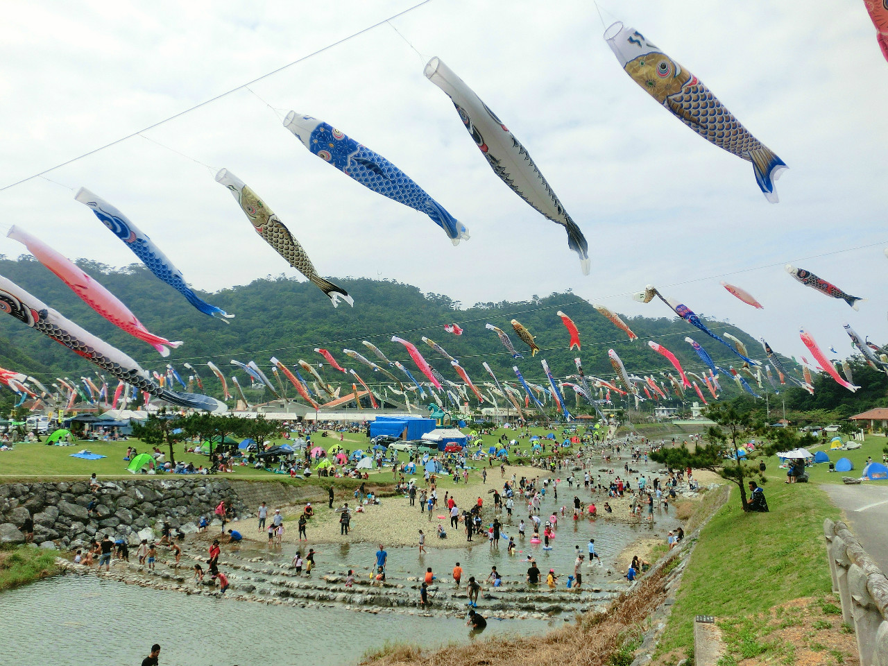 多数の鯉のぼりが頭上で泳ぐなか、特設ステージではエイサーや民謡ショー・フラダンスやビンゴゲームがなどのイベントが催される。やんばるの大自然の中、河川敷の芝生に座り、ピクニック気分で大人も子供も楽しめる。