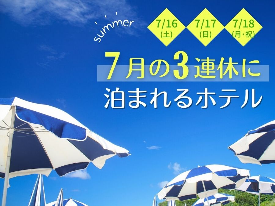 2022年7月16日(土)~18日(月・祝)の3連休は、日帰りで楽しむのもおすすめだが、せっかくのまとまった休日は、ホテルに泊まって有意義に過ごしたいもの。