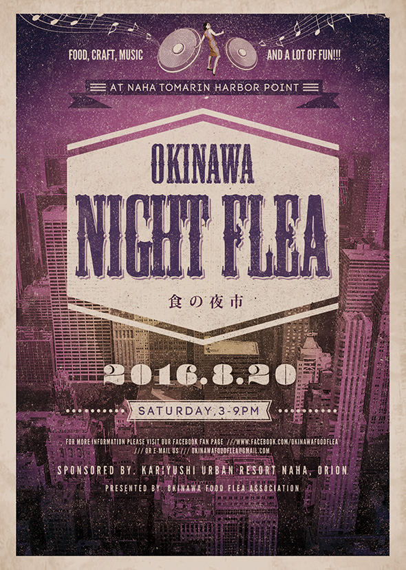 県内で人気のグルメイベント「OKINAWA FOOD FLEA」が、2016年8月20日(土)にかりゆしアーバンリゾート那覇 隣の広場で開催される。2014年8月にスタートし、今年で2周年を迎える。