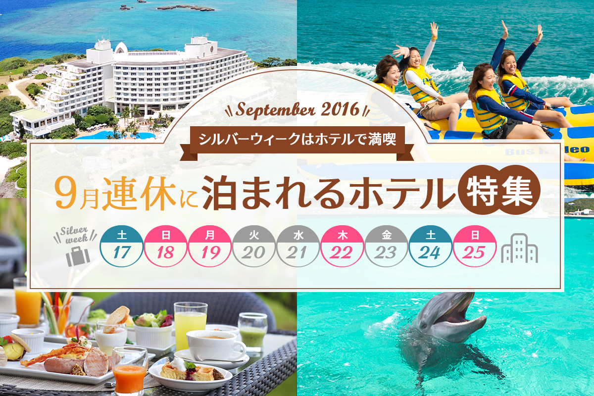 9月は19日(月)の敬老の日と22日(木)の秋分の日で祝日が2回。3連休と飛び石連休をうまく利用して有意義な休日を過ごしたいあなたに、沖縄県内のリゾートホテル特別宿泊プランをご用意!