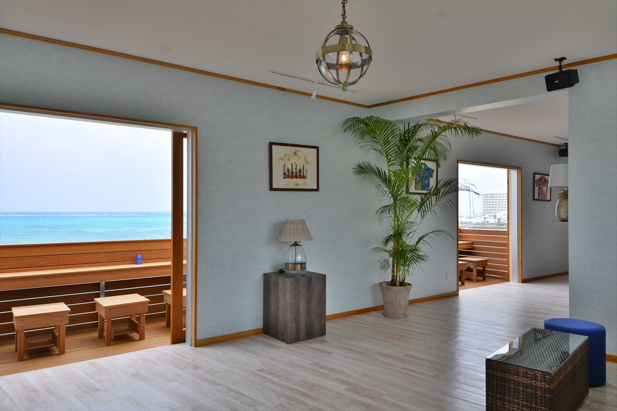 「Kafuu Beach House」は冨着ビーチのロケーションを一望できる空間となっており、ゆったりとしたカフェタイムを過ごすことができる。