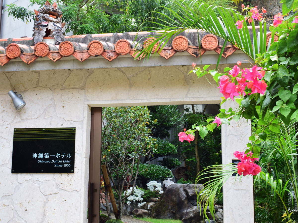 沖縄第一ホテルは、那覇市の賑やかな街から一変、ブーゲンビリアや月桃、サガリバナなどの花々に囲まれた中庭があり、静かな空間。