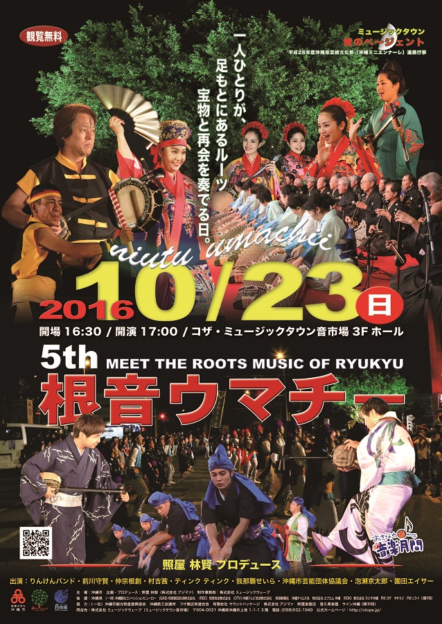 2016年10月23日(日)、沖縄市のミュージックタウン音市場で、照屋林賢がプロデュースする芸能と音楽のイベント「根音(ニィウトゥ)ウマチー」が開催される。