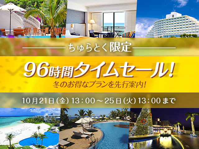 2016年10月21日(金)13時~25日(火)13時までの期間中、ちゅらとく限定ホテル宿泊プランの96時間タイムセールを開催する。