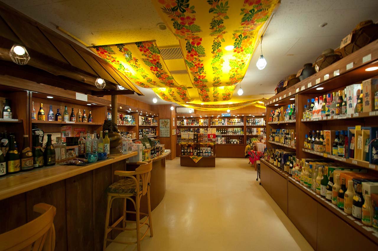 恩納村にあるホテル「リザンシーパークホテル谷茶ベイ」内に、泡盛約500種類の品揃えを誇る泡盛専門店「琉球泡盛館 あかばなー」が存在する。