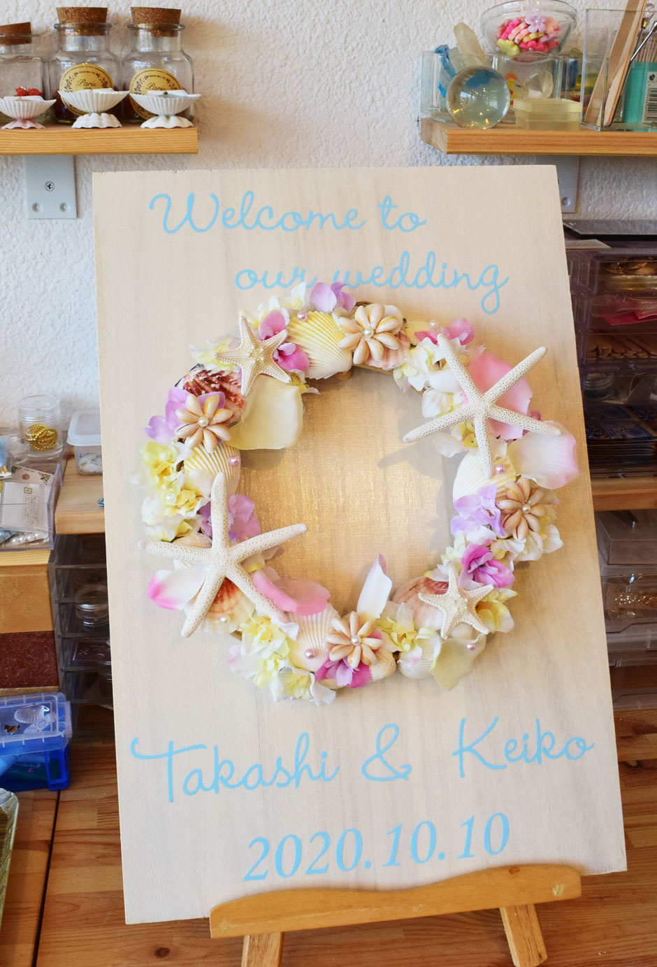 1時間ほどかけて作ったオリジナルの作品は、出来上がったら乾かしてその日に持ち帰ることができる。そのほかにも、店内の商品の販売やオーダーメイドの受注もしているのでウェルカムボードや県外の友達のお土産にもぴったり。
