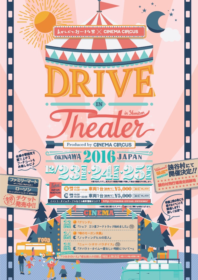 12月23日(金)~25日(日)の3日間、沖縄県読谷村で「ドライブインシアター」が開催される。