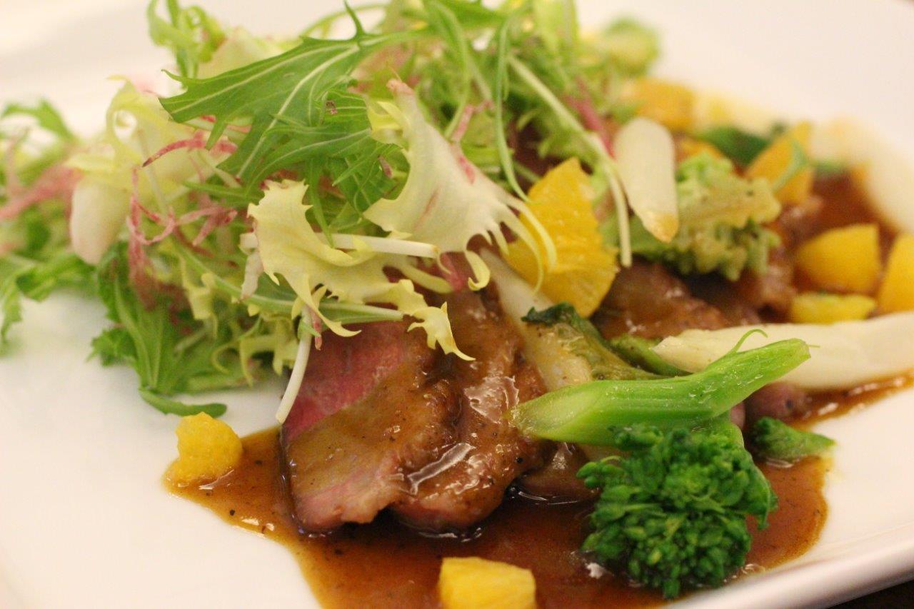 ハーフランチブッフェのメイン料理は「合鴨肉のロースト 菜園仕立て果肉入りタンカンソース」や「アンガスビーフのリブロースグリル」などから選択可能。またブッフェ台には「タンカン香るフォー」「ワカサギの姿揚げ タンカン風味」などの前菜やサラダ、ドリンクの他「タンカンの果肉ゼリー」や「タンカンシフォンケーキ」などの、パティシエ特製デザートが並ぶ。