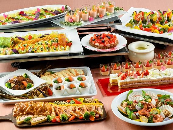 春野菜と鶏もも肉のテリーヌ いちごドレッシング添えや、菜の花とフレッシュトマトの冷製パスタなど、春のおいしい食材が鮮やかに彩られた料理の数々を思う存分堪能できる。