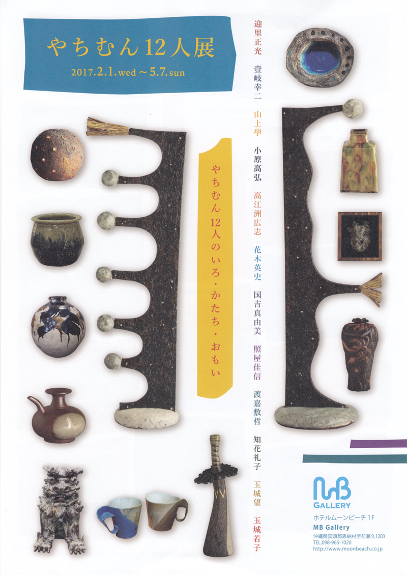 2017年2月1日(水)~5月7日(日)の期間中、恩納村にある「ホテルムーンビーチ」では、「やちむん12人展 ~やちむん12人のいろ・かたち・おもい~」を開催。
