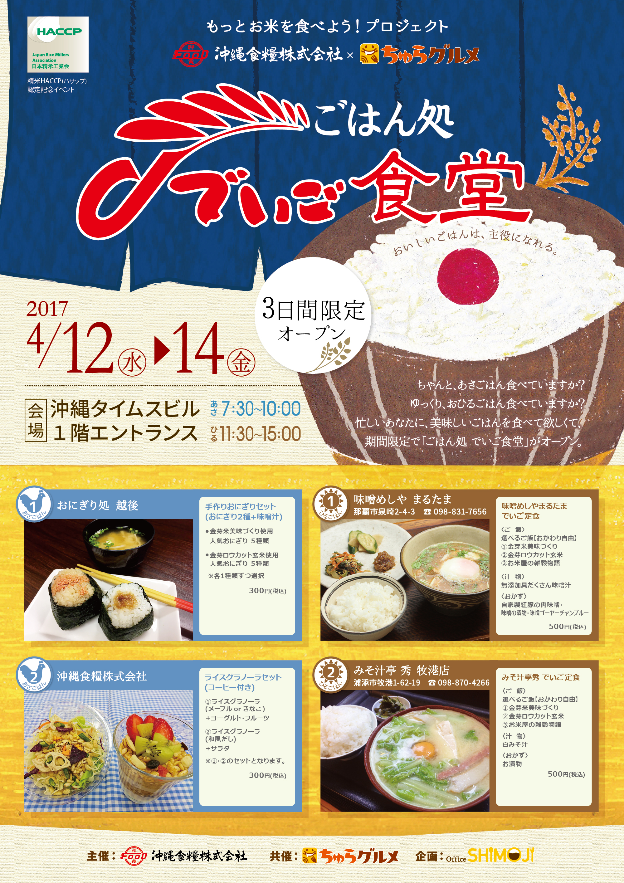 2017年4月12日(水)~14日(金)の3日間、那覇市久茂地にある沖縄タイムスビルに「でいご食堂」が限定オープン。