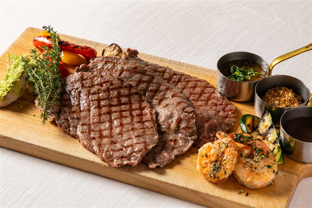 母の日の2日間限定で、女性は全員880円OFFの特別価格。厚さ5cm・長さ1mの本格鉄板で、国産和牛とやわらかな鮑を約250度の高温で一気に焼き上げ、旨みを閉じ込めた一皿は必食。さらに、出汁のソムリエである総料理長が厳選しただしで味わう鰻のひつまぶしも食べ放題で楽しめる。アルコールも飲み放題で、満足感の高いラインナップ。目の前に西海岸の雄大な景色が広がるレストランで、贅沢ブッフェを心ゆくまで堪能しよう。