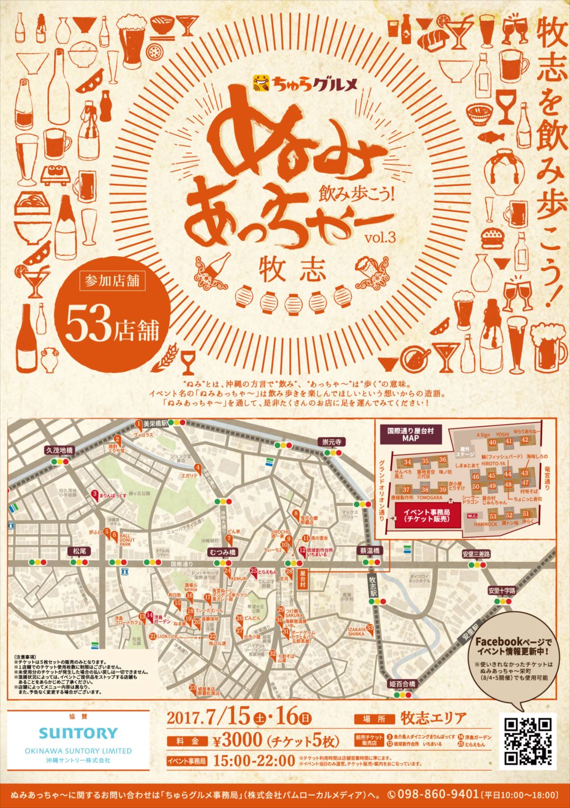 2017年7月15日(土)・16日(日)の2日間、那覇市牧志エリアで飲み歩きイベント『ぬみあっちゃ~vol.3』が開催される。
